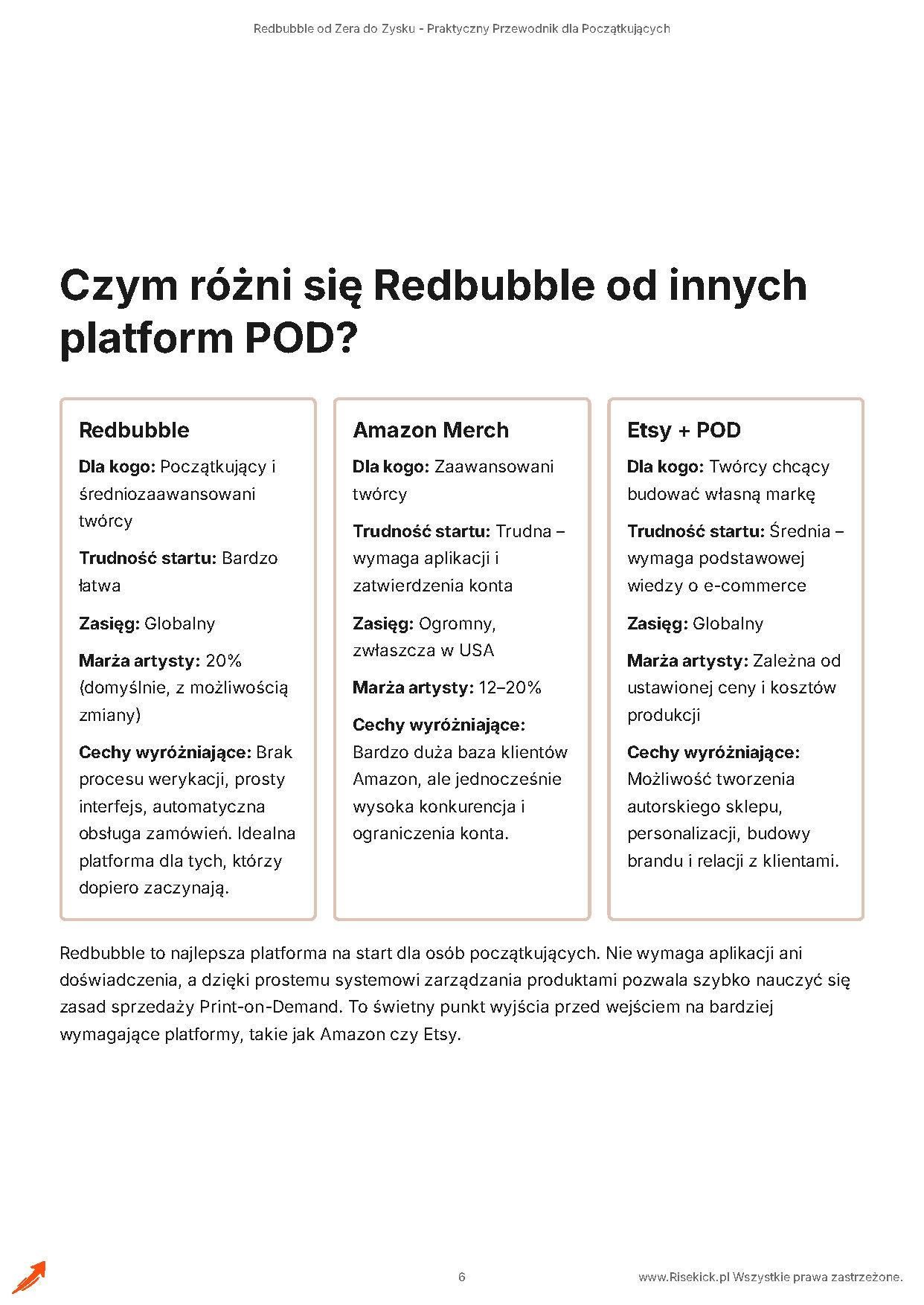 👉 Jak działa model POD i czym różni się Redbubble od Amazon Merch czy Etsy.